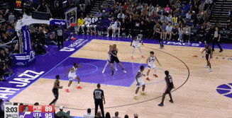 对阵爵士,3分1助1断1帽3失误6犯规
