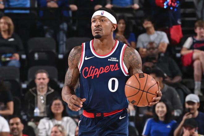本场比赛中,快船虽然输掉了比赛,但是球队的先发得分后卫布拉德利-比尔(Bradley Beal)的表现还是有些一般的。比尔全场出场20分09秒,投篮8中5,三分线外4中2,罚球2中0,得到了12分1篮板2助攻1抢断的数据,还有3次失误和3次犯规,正负值为-2。比尔在进攻端保持了相当不错的进攻效率,他的得分能力也还是发挥了出来。在出场时间碎片化,战术地位有限且出手次数不多的情况下,比尔还是得到了不少的分数。不仅如此,比尔在防守端的表现也是值得肯定的,他也是有着很高的防守积极性。我们也看得出来,比尔非常努力,也很希望为球队提供更多的支持,也愿意在防守端付出更多的体力,然而在目前这种环境中,在这样的战术安排之下,他确实是很难发挥出自己的特点。