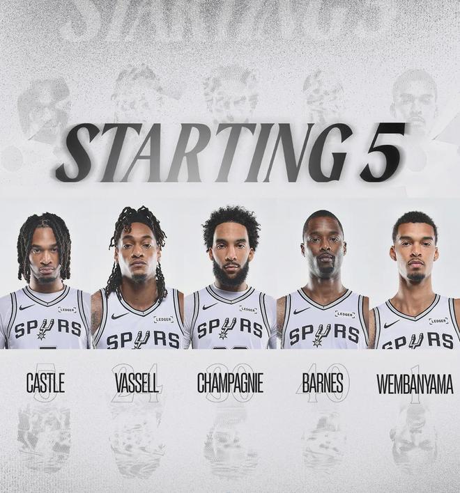 里夫斯因腹股沟酸痛,连续第二场缺阵。马刺榜眼迪伦-哈珀左小腿拉伤,预计缺席2-3周,奥利尼克跟索汉本场复出。马刺首发:卡斯尔、瓦塞尔、尚帕尼、巴恩斯、文班亚马。湖人首发:东契奇、斯玛特、拉拉维亚、八村塁、艾顿。