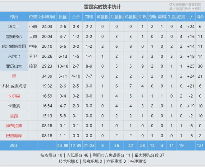 此役过后,雷霆12胜1负继续领跑全联盟。最后看看数据,说说心情: