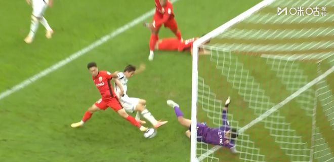 第55分钟,望月海辉右边路送出直塞,杜克插入禁区倒三角传到门前,藤尾翔太迎球推射,皮球已经越过陈威,好在张琳芃在门线上头球解围。